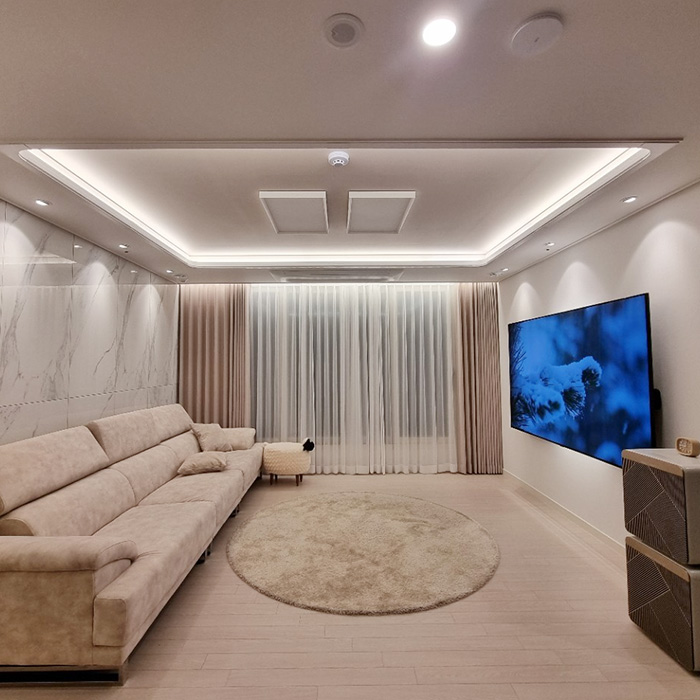 우물천장 간접등(목공/PVC/무몰딩) + COB간접등 8개 + 커튼박스 간접등 +